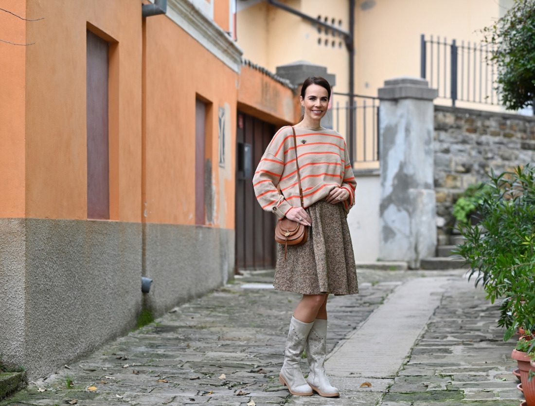 Čeprav sem v polnem obdobju lila in turkizne barve, sem navdušena tudi nad zemeljskimi toni, tokrat s kančkom oranžne.