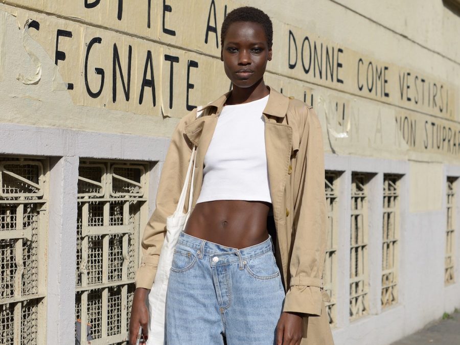 Gre za precej drzen outfit, ki vsekakor zahteva lep, negovan in tudi raven trebuh, a z izbiro pravega topa se v resnici da zakriti in skriti marsikaj.