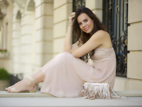 Z razporkom in čudovita z nizkimi sandali, zelo dopustniška in ravno prav navihana.