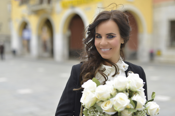Super udobne hlače z visokim pasom zahtevajo zelo visoke pete in torbica iz Pariza je bila kot pika na i, prav narejena za to podobo.