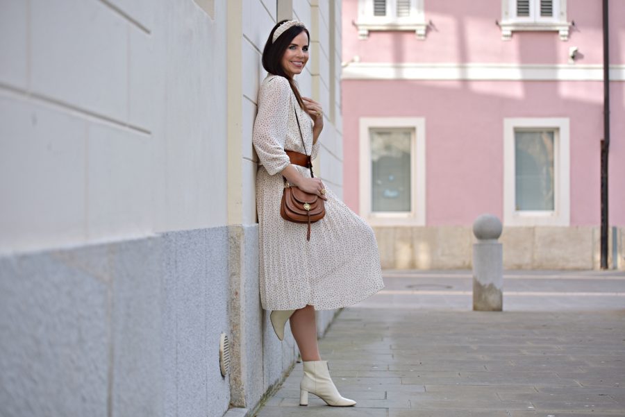V zadnjem času sem odkrila kar nekaj čudovitih kosov, ki jih nosim z največjim veseljem, med njimi je bela pletena obleka, s čipkasto podlogo, tako mehka, da je sploh ne bi slekla, in seveda v meni zelo ljubem, zimskem odtenku.