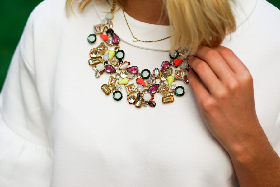 Kombinacije z nakitom tokrat stopajo v eno ali drugo skrajnost, super modne pa so predvsem oblike velikih, drznih verig.