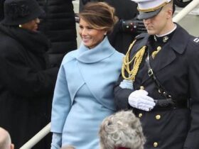 Prva dama Amerike je bila zelo elegantna in prefinjena v baby blue kompletu znamke Ralph Lauren, salonarji z zelo visoko peto pa so še dodatno poudarili njeno vitkost in manekensko držo.