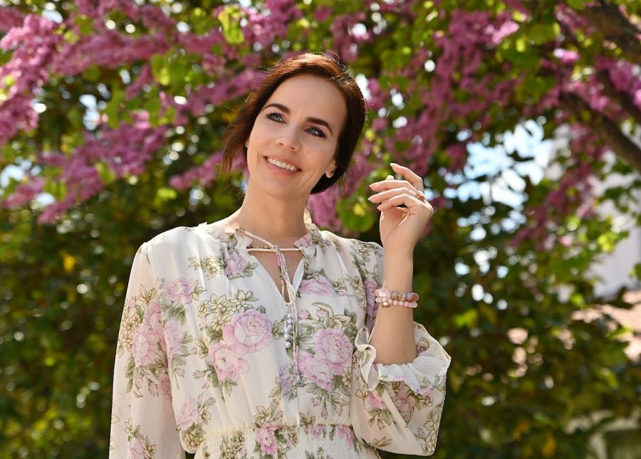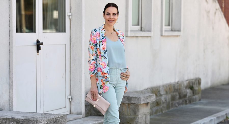 Blazerji, kostimi, dolga in midi krila, sandali, torbice, rute, obroči za lase, vse cveti.