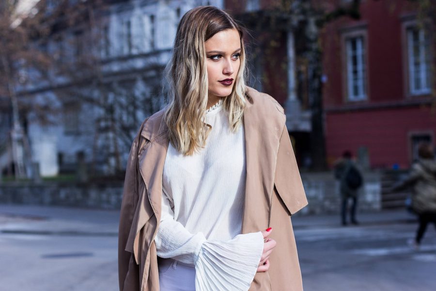 Ženstven, večkrat rahlo mat sijaj nudi številne stajling možnosti, sploh ko stavimo na enobarvne, nevtralne tone.