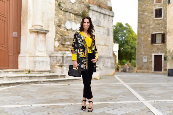 Kot veste narekuje letošnja jesen ogromno žameta, zato mi je bil ta model še posebej pri srcu, in prepričale so me barve, ki jih načeloma zelo malo nosim, z rumeno na prestolu.