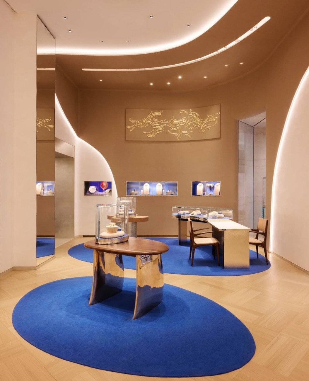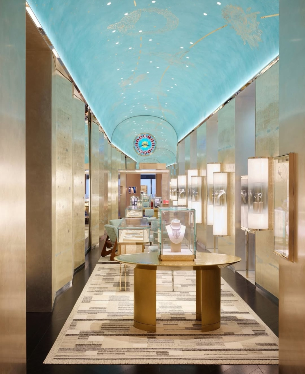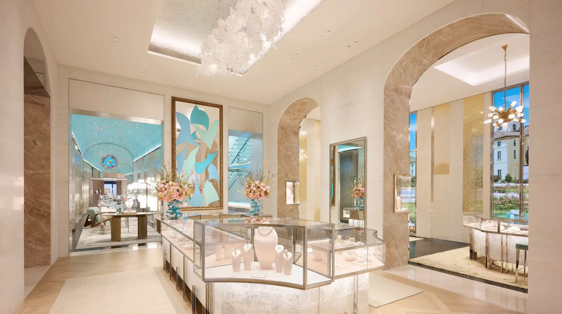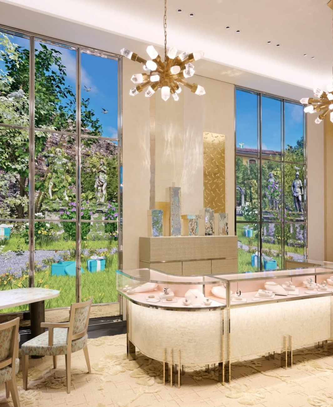 Z več kot 1.200 kvadratnimi metri površine je butik na Via Montenapoleone danes največji Tiffany & Co. store v Evropi. Nahaja se v zgodovinski Palazzo Taverna, elegantni neoklasicistični stavbi iz leta 1835, v samem srcu milanskega Quadrilatera. Že sama lokacija govori jezik prestiža, a notranjost prostor dvigne na povsem novo raven. Prostor je zasnovan kot galerija, ne kot klasična prodajalna.
