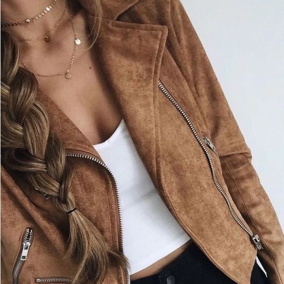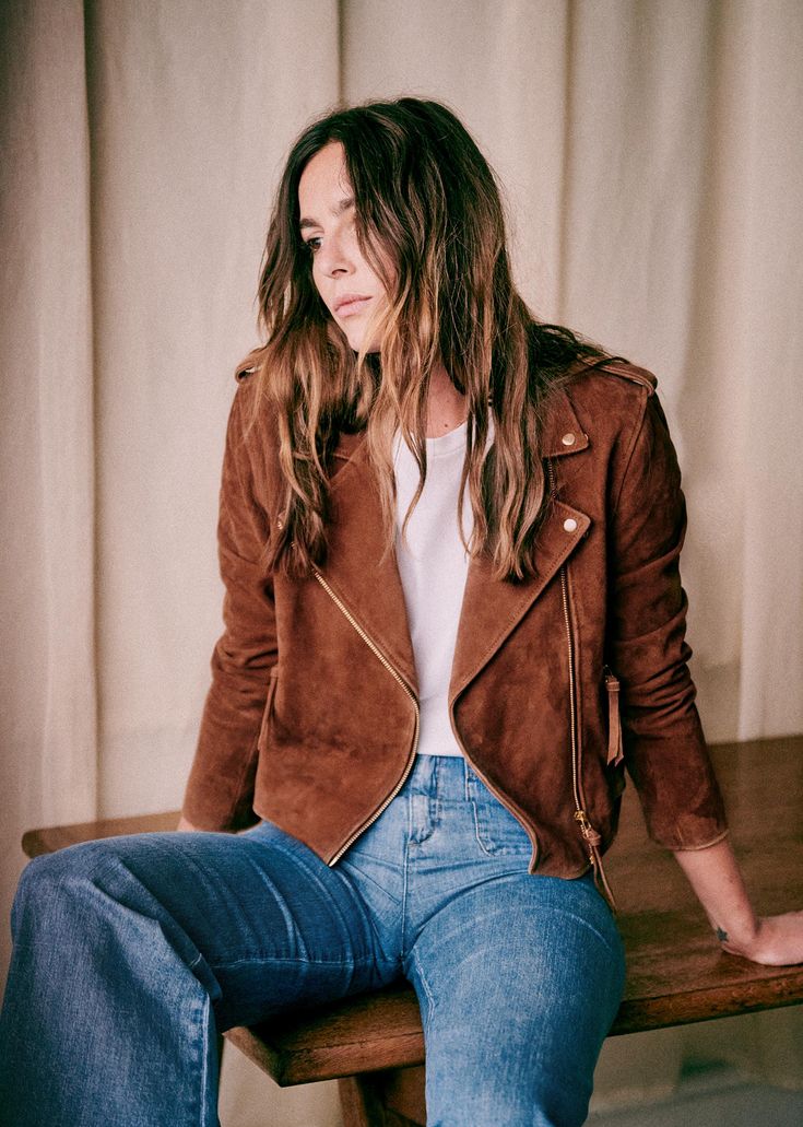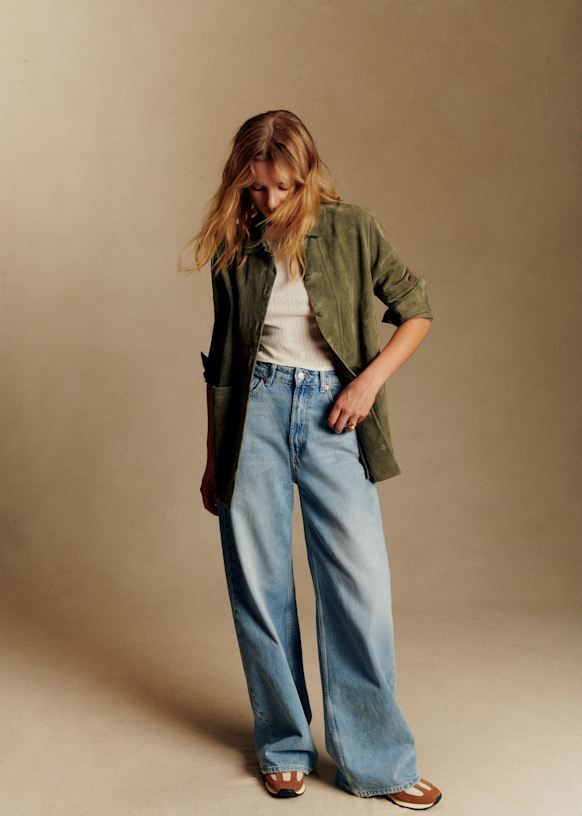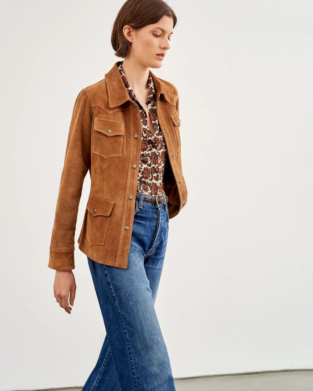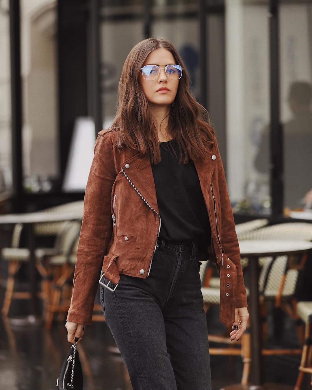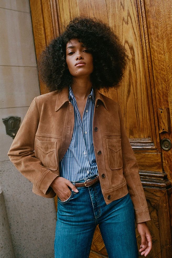 Najbolj brezčasen par. Semiš jakna in dobro krojene kavbojke ustvarijo sproščeni “everyday chic”. Dodajte belo majico in gležnjarje, pa ste pripravljeni na vse.