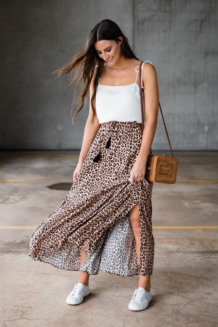 Dolgo krilo in slip top – ena mojih najljubših poletnih kombinacij, saj nudi ogromno udobja, hkrati pa deluje zelo elegantno in dodelano. Vsekakor izbirajmo visok pas in A kroje, torej tiste zvončaste, v katerih je hoja zelo enostavna, hkrati pa celotna linija poskrbi, da skrijemo veliko nepravilnosti, ne da bi morale trpeti preozke ali prevroče kose. Zraven se v teh visokih temperaturah odlično podajo vsi topi brez rokavov, za najbolj pogumne so tu crop izvedbe, nikoli pa ne bomo zgrešile s slip topom, ki naj bo ohlapen in krašen z vezeninami, čipkasto obrobo ali vsaj zanimivo poletno barvo.