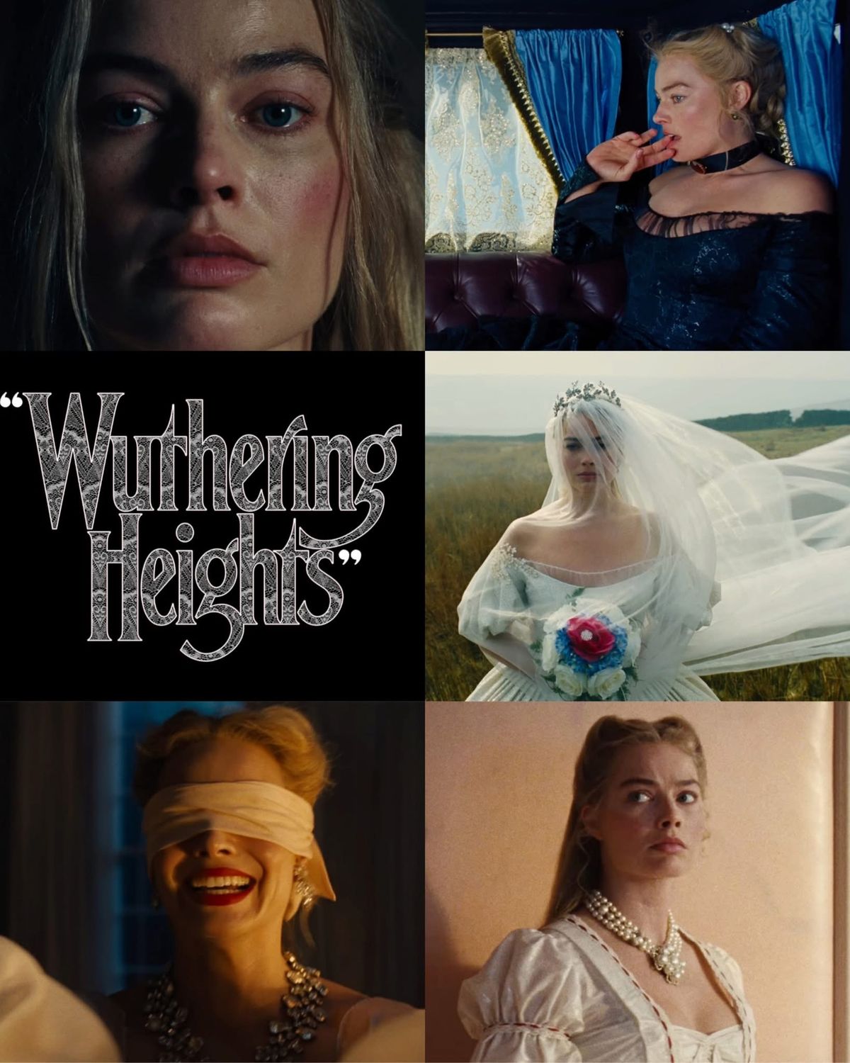 Margot Robbie kot Catherine v prvih izdanih fotografijah blesti v poročni obleki, ki takoj nakazuje njen notranji konflikt – lepota, ujeta v kletko lastnih odločitev.