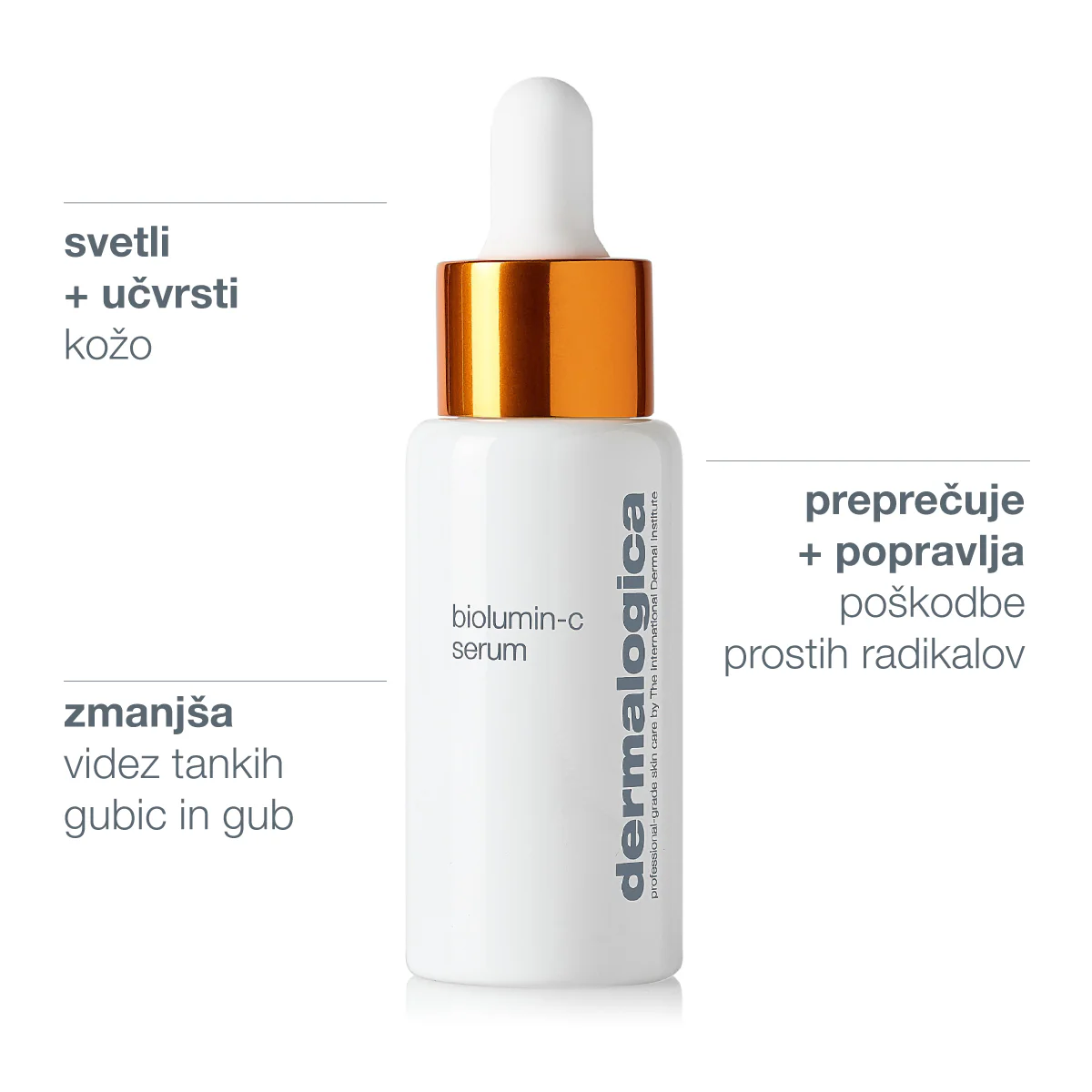 Vitamin C je močan antioksidant, kar pomeni, da pomaga nevtralizirati proste radikale, molekule, ki jih povzročajo sonce, onesnaženje in stres ter lahko poškodujejo kožne celice. Z redno uporabo izdelkov z vitaminom C koža postane bolj sijoča, enakomerna in vidno bolj gladka. Poleg zaščite pred okoljskimi vplivi vitamin C spodbuja tudi tvorbo kolagena – naravne beljakovine, ki ohranja kožo čvrsto in elastično. S staranjem se proizvodnja kolagena zmanjšuje, zato lahko serumi z vitaminom C pomagajo omiliti videz drobnih linij in gubic.