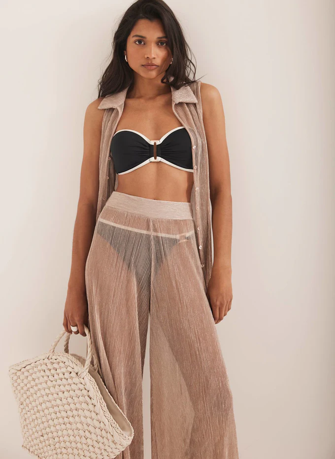 Temperaturni vzponi in padci letošnjega poletja nas silijo tudi v hitro spreminjajoče se stajling izbire. En dan je skoraj edina izbira lahkotna obleka, spet drugi se že ovijamo v toplo jopico. In spet obratno. Vroča sezona seveda še ni rekla zadnje in trenutki na plaži so ta hip še kako aktualni. In čeprav so tam poglavitne naše kopalke, to še ne pomeni, da naj bodo preostali kosi neopazni ali povsem bazični. Prav nasprotno, saj nam modna scena že nekaj let zapored predlaga naravnost čudovite kose, namenjene prav kopalnim trenutkom. So izredno elegantni, a hkrati nosljivi. Prava izbira torej za marsikatero izmed nas.