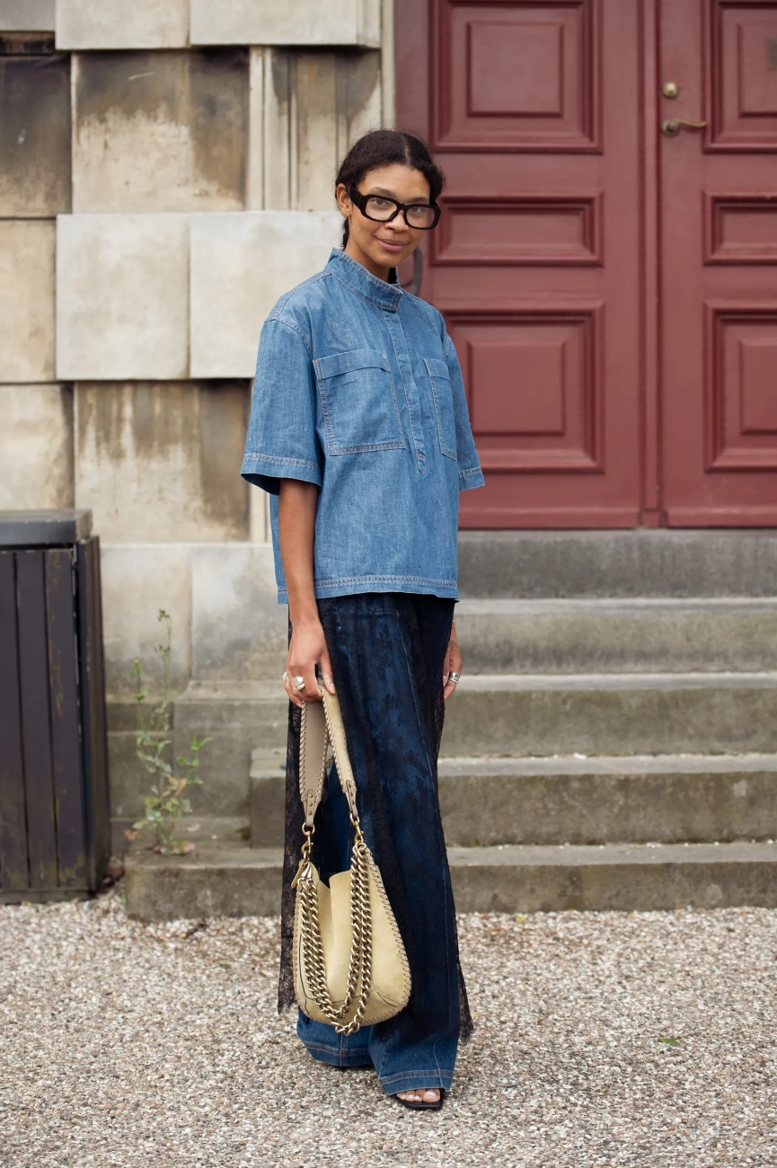 Najlepši outfiti pogosto nastanejo tam, kjer jih najmanj pričakujemo. Jeans srajca presenetljivo dobro deluje tudi z romantičnimi oblekami in elegantnimi krili.