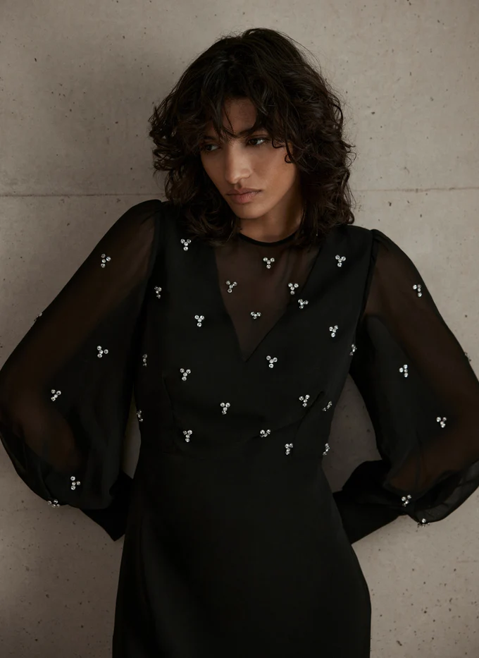 Napovedi naslednjih mesecev kažejo, kako zelo vztrajna je klasična črnina. Slednja namreč po vsem tem času še vedno ostaja na vodilnem položaju, modne hiše pa so jo odprtih rok pozdravile tudi v nadaljevanju leta 2025. Črnina in prosojnost se seveda odlično dopolnjujeta, sploh ko je govora o topih, bluzah in bodijih. Te mesece v igri ostajajo tudi najlonke in nogavičke, detajl prosojnosti pa sem ter tja priprada celo obutvi, sploh petkam.